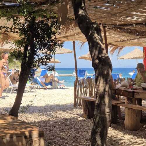 🐚 The beach has small pebbles, clear waters, and often feels like a private island escape.